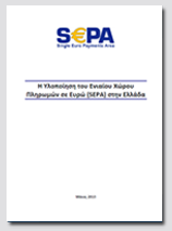 SEPA Cards Standardisation Volume (Version 7.05): Τρίμηνη Διαβούλευση έως την 5η Ιουνίου 2015     Clarification Paper: SEPA Credit Transfer and SEPA Direct Debit     Νέα έκδοση του SEPA Credit Transfer Rulebook (v. 8.0) του EPC που θα τεθεί σε εφαρμογή από 22 Νοεμβρίου 2015     Νέες εκδόσεις των SEPA Core (v. 8.0) & SEPA B2B Direct Debit (v. 6.0) Rulebooks του EPC που θα τεθούν σε εφαρμογή από 22 Νοεμβρίου 2015     Νέες εκδόσεις των SEPA Core (v. 9.0) & SEPA B2B (v. 7.0) Direct Debit Rulebooks του EPC που θα τεθούν σε εφαρμογή από 20 Νοεμβρίου 2016     The EPC Migration Tool Kit: Get Ready for SEPA     Τρίμηνη Διαβούλευση με τις εθνικές τραπεζικές κοινότητες επί των προτεινόμενων επικαιροποιήσεων των SEPA Credit Transfer, SEPA Core & B2B Direct Debit Rulebooks του EPC     Second SEPA migration report (Οκτώβριος 2013)     SEPA e-brochure (Οκτώβριος 2013)     SEPA GUIDANCE - Αύγουστος 2012     Σύντομη παρουσίαση του Ενιαίου Χώρου Πληρωμών σε Ευρώ (SEPA)     Σύντομη παρουσίαση του συστήματος μεταφοράς πιστώσεων του SEPA     Σύντομη παρουσίαση των συστημάτων άμεσων χρεώσεων του SEPA     Έμποροι: Οι 10 καλύτεροι λόγοι για την εφαρμογή του SEPA     Επιχειρήσεις: Οι 10 καλύτεροι λόγοι για την εφαρμογή του SEPA     Δημόσιος Τομέας: Οι 10 καλύτεροι λόγοι για την εφαρμογή του SEPA     Ο SEPA για τους καταναλωτές     SEPA: Πληροφορίες για τον Δημόσιο Τομέα