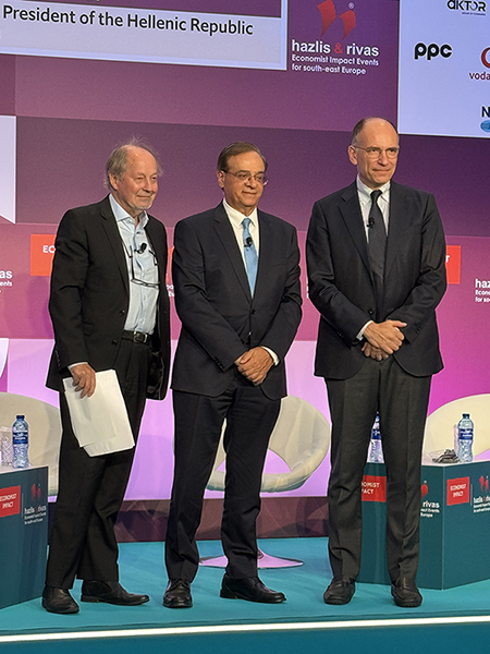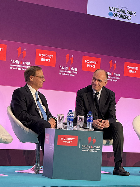 Για την αναγκαιότητα σημαντικής αύξησης των επενδύσεων στην Ευρώπη ώστε να ενισχυθεί η ανταγωνιστικότητά της και να ισχυροποιηθεί η αναπτυξιακή δυναμική της και η ευημερία της, μίλησε σήμερα ο Πρόεδρος του Δ.Σ. της Εθνικής Τράπεζας καθηγητής κ. Γκίκας Χαρδούβελης, στο 29o Ετήσιο Συνέδριο του Economist, σε πάνελ με τον πρώην πρωθυπουργό της Ιταλίας, κ. Ενρίκο Λέττα.