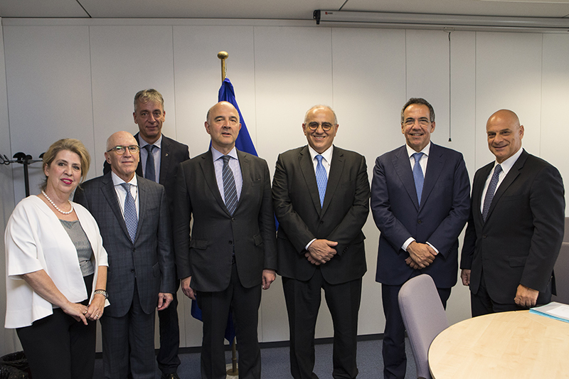 Αντιπροσωπεία της Ελληνικής Ένωσης Τραπεζών, αποτελούμενη από τον Πρόεδρο του Διοικητικού της Συμβουλίου κ. Νικόλαο Καραμούζη και Προέδρου της Eurobank Ergasias, το μέλος του Δ.Σ. κ. Παναγιώτη Ρουμελιώτη και Πρόεδρο της Attica Bank, τον Διευθύνοντα Σύμβουλο της Εθνικής Τράπεζας της Ελλάδος, κ. Λεωνίδα Φραγκιαδάκη, τον Αναπληρωτή Διευθύνοντα Σύμβουλο της Eurobank Ergasias και μέλος της Εκτελεστικής Επιτροπής της ΕΕΤ κ. Σταύρο Ιωάννου, τον Γενικό Διευθυντή της Τράπεζας Πειραιώς και μέλος της Επιτροπής Αγορών και Κεφαλαίων της ΕΕΤ κ. Αθανάσιο Αρβανίτη και τη Γενική Γραμματέα της ΕΕΤ κα Χαρούλα Απαλαγάκη, πραγματοποίησε σειρά προγραμματισμένων συναντήσεων στις Βρυξέλλες. Η ΕΕΤ συναντήθηκε αρχικά με ομάδα Ελλήνων Ευρωβουλευτών υπό το συντονισμό του Αντιπροέδρου του Ευρωπαϊκού Κοινοβουλίου κ. Δημητρίου Παπαδημούλη. Στη συνέχεια, τα παραπάνω μέλη της ΕΕΤ συνάντησαν τον Επίτροπο Οικονομικών και Νομισματικών Υποθέσεων κ. Pierre Moscovici, ο οποίος μετά τη συνάντηση δήλωσε: