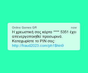 Τα μηνύματα αυτά ΔΕΝ ΠΡΟΕΡΧΟΝΤΑΙ από την τράπεζά σας (μάλιστα κάποιες φορές φαίνεται να τα στέλνει τράπεζα με την οποία δεν διατηρείτε καν συνεργασία). Είναι μηνύματα απατηλά (phishing) και αποσκοπούν στο να σας ξεγελάσουν ώστε να καταχωρήσετε σε απατηλή ιστοσελίδα πανομοιότυπη με αυτήν της τράπεζας σας τους κωδικούς σας πρόσβασης στο ebanking ή τα στοιχεία της κάρτας σας αλλά και τους Κωδικούς μιας Χρήσης (OTP) που λαμβάνετε εκείνη τη στιγμή και απαιτούνται για την έγκριση συναλλαγών.